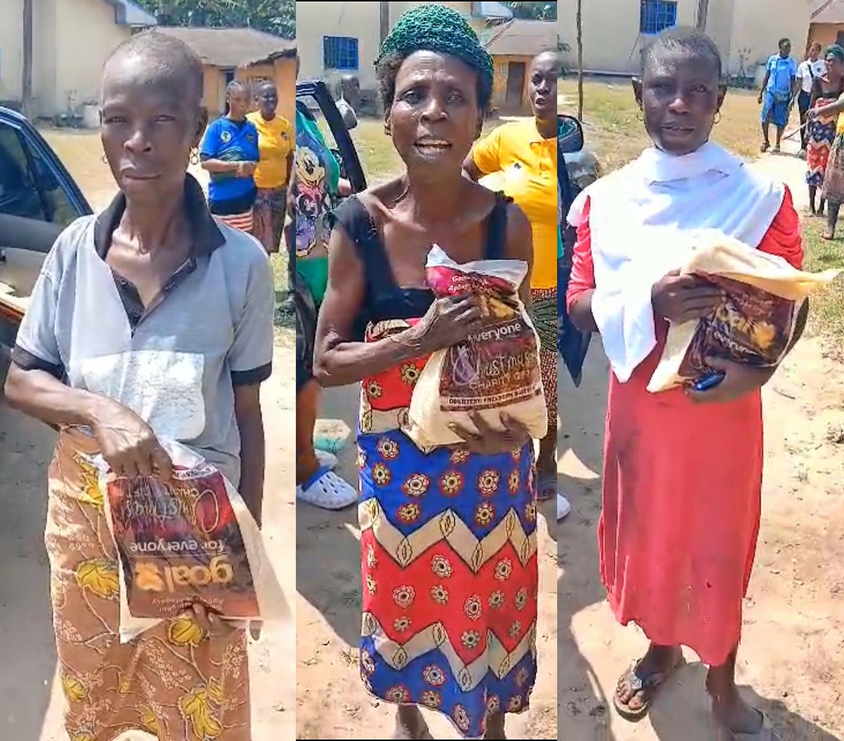 Three widows with their bags of rice.